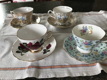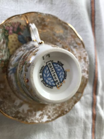 2 matching Colclough Bone China by Ridgeway ?Lady in Yellow and Blue?