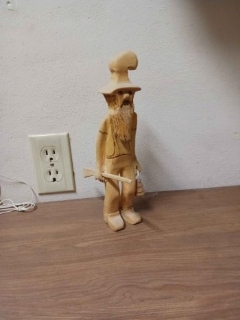 10" tall Locally Hand Carved Bearded Woodsman Figurine carrying two Items