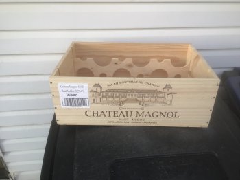 Right in Brandon,wooden wine box,holds 12 bottles or toy box or pet bed ,whatever.