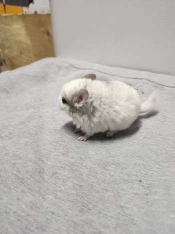 1 female mosiac chinchilla pup left. Ready to go March 13. Hand tamed and social.