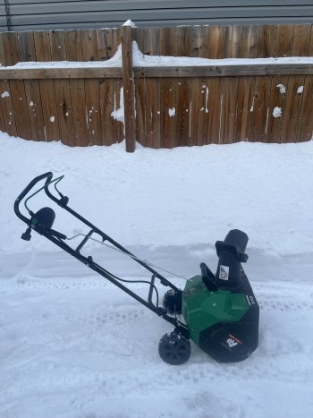 Certified 18 inch electric snowblower with 13.5 amp motor and LED light. Like new condition and has barely been used. Works great. Comes with brand new 50ft 14 gauge extension cord. Very light and easy to use. Selling for $120. Text or email if interested.