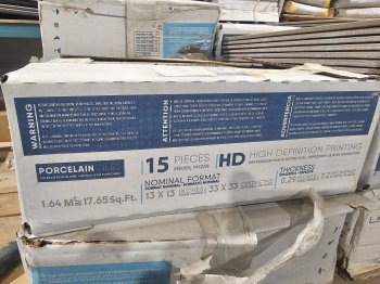 New tile for sale. Leftovers from a large job. 62 boxes total. The tiles are 13"x 13". 17.65 sq-ft per box. Selling for $1 a tile.