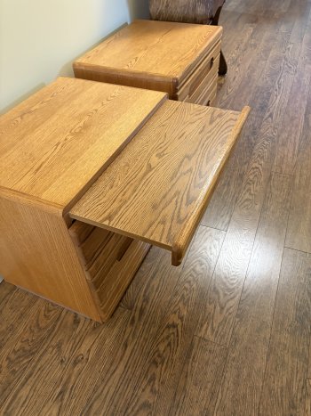 LIKE NEW - 2 solid wood night stands. 23.75?W x 18?D x 21.5?H