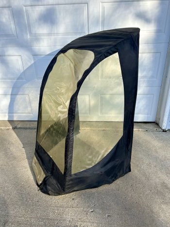 Heavy duty snowblower cab. Protects operator from blowing snow. Detachable. Comes with mounting brackets. Good condition.