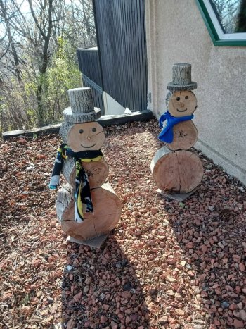 Log Slice Handcrafted Snowman Family of 4