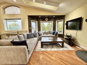 Let's get moving! This stunning custom executive home offers a warm and inviting atmosphere. It includes 5 bedrooms and 3 bathrooms on a 10454 sq ft lot with views of Brandon. The spacious, open-concept kitchen features vaulted ceilings and custom concrete countertops throughout. Upstairs, there are three large bedrooms, including a luxurious ensuite with a separate shower and a jetted sunken tub. The family-friendly backyard is complemented by a grand deck, perfect for entertaining. The triple-car garage is a full ICF structure with heated floors, comprehensive insulation, and steel cladding, plus a sizable workshop or storage area. A large concrete pad on the side of the property provides space for parking an RV or boat. The bright lower level includes two full bedrooms, a walk-out to the backyard with oversized windows, heated floors, and a custom wet bar ideal for hosting. The office can be converted into a sixth bedroom. Additional features include a central vacuum system with hose and attachments and an underground sprinkler system.