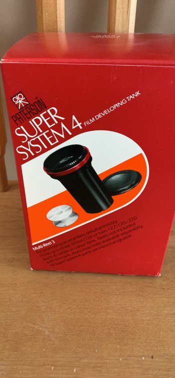 Paterson Super System 4 Film Developing Tank. Multi-reel 3. For processing several films simultaneously. Holds up to three 35mm/126 or two 127/120/220 films. In excellent condition. In original box. $25