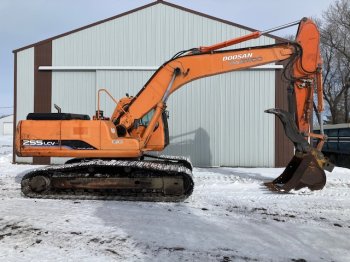 2006 Doosan 255LC5; c/w hydraulic thumb, hydraulic quick connect, auxiliary plumbing, ProHeat coolant heater, cab guards, 36 inch digging bucket, new hydraulic pump, fresh service, 9,568 hours.