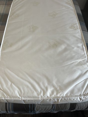 Clean crib mattress, mattress cover, fitted sheet $40.