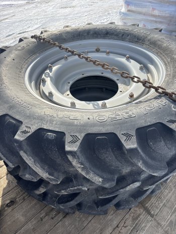 4- Michelin 420/80R46 tires and rims good tread but surface cracked- 900$ each obo