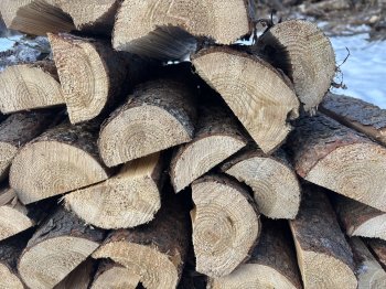 Bagged seasoned firewood. Birch, tamarack, spruce, or a mix. Delivery available. $12 a bag. $10 a bag when purchasing 10 or more bags. Large volumes available