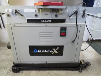 Delta DJ-20 8" jointer planer with mobile base, manual and push blocks. The planer is in good working condition.