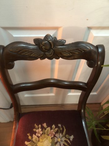 Vintage Rose Mahogany Chair With Floral Needlepoint Seat