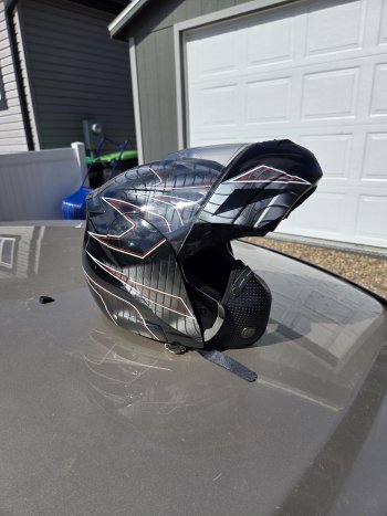 sell ski doo helmet ,maybe wore twice ,front flip up ,sun visor belt into helmet