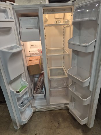 For Sale in good used condition Fridge with Freezer and Ice Maker. Water tray underneath Ice Maker push Button is missing otherwise in good shape and was being used up till now. Has to be picked up in the Town of Souris.