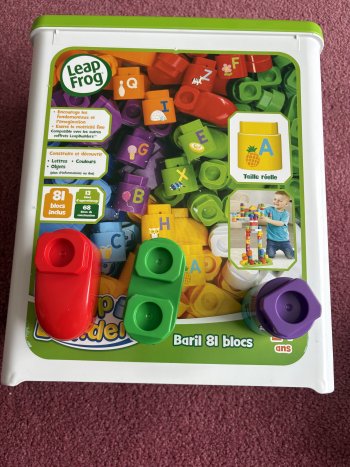 Photo 2. Leap Frog plastic building blocks. 81 pieces. Like new. $5
