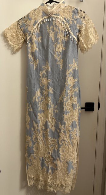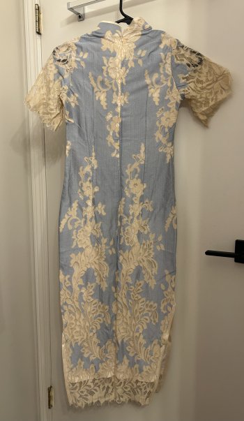 Brand new dress! Size Small! Light blue with beige in color. Slits up each side. Comes down to mid calf.