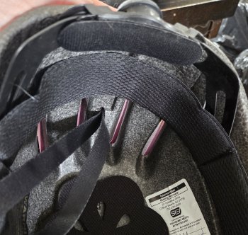 Bought this helmet for myself and unfortunately it fits a round head, not oval. It has the dial-fit adjustable band. A lightweight vented helmet. Unfortunately it has a small piece of paint missing on the brim from being in the tack room (can be seenin the picture), price reflects that. Size Large.