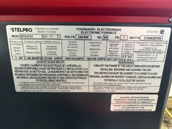27kw stelpro electric furnace with matching a/c. Excellent condition