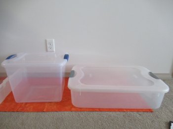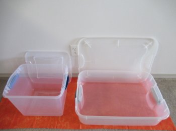plus for free when buying the other two, one Rubbermaid container, good condition, with lid which has a small corner missing on it, measures 22 3/4 inch L x 16.5 inch W x 6 inch H.