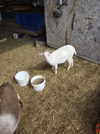 Two female goats for sale. Bigger one is 3 years old. Smaller one is coming year old.