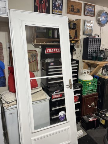 Larsen exterior storm door, screen away 32x81. Just removed and replaced with new door. All hardware complete.