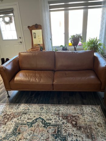 Beautiful tan leather sofa nearly new 83 inches long Pickup and cash only will consider offers Text only please