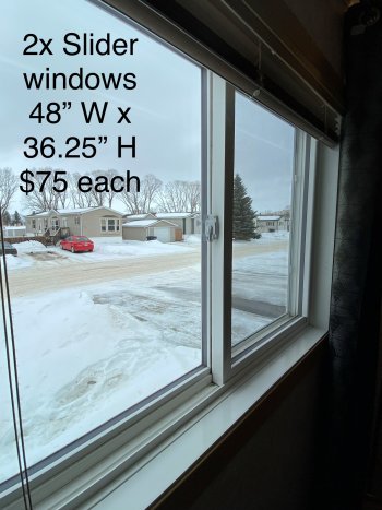 2 Slider windows 48.00" 36.25" includes screen, casing trim $75