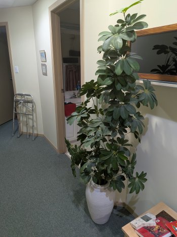 Silk foliage, real wood trunk, fig tree. 6 feet in height.