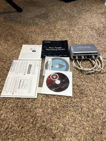 M-Audio recording interface with recording software and manuals.