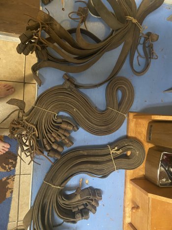 26 vintage, leather straps, slings belts, 10.00 each or 120.00 for the lot , 4ft long 1 1/4 wide
