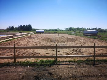 Indoor Riding Arena with Heated Barn, Stables and 70 acres of pasture land with dugout for sale.