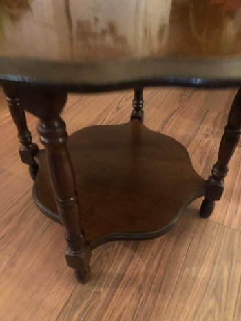 -Great Solid Vintage Round Wooden Side Table With Nice Wooden Bottom Shelf