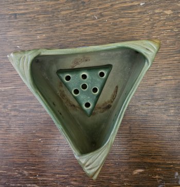 Rare Weller potteries "tutone" flower frog. Made in the 1920s. Perfect condition!. Measures approximately 7 inches along sides and 3 inches tall. Pickup in Neepawa or may meet. $300.00