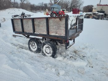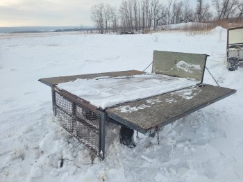 Folding trailer for sale handy around the yard folds up to a 4x8 box or folds down to an 8x8 deck, walking axle, clevis hitch, well built frame asking 500 located north of neepawa text or call 204-212-0496