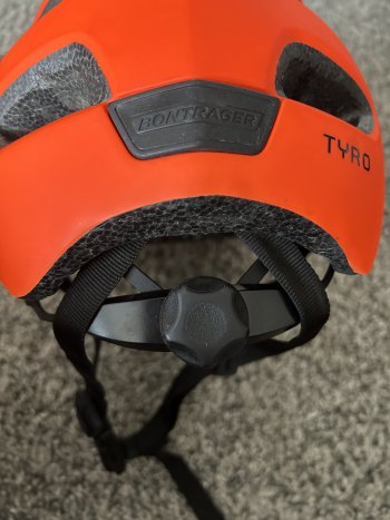 Tyro Bontrager kids bike helmet, good condition, only used by one kid. Purchased from A&L. Easy to adjust sizing with a dial at the back of the helmet and easy for kids to put on or take off with a magnetic buckle. Youth size, fits 48-55cm.