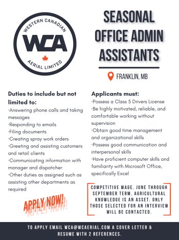 Western Canadian Aerial Ltd. is looking for Seasonal Office Administrative Assistants for the 2026 season. June through September term.