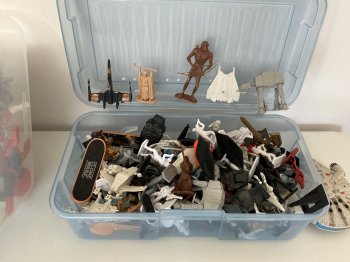I have three containers of toys. I am asking $5.00 for the ones in the first lot, $8.00 for the second lot, and $10.00 for the third lot.