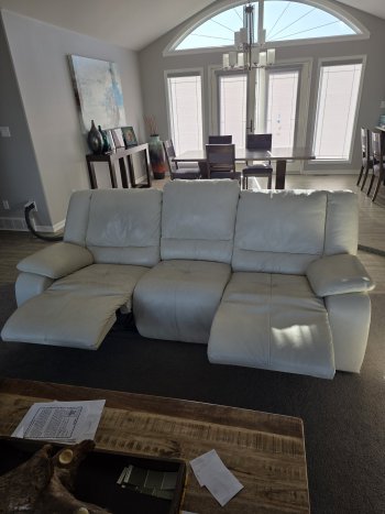 Palliser leather reclining love seat and sofa for sale. 1 seat on sofa and love seat showing wear, otherwise in good shape. Asking $350 cash for both. April 25th I'll be traveling to Brandon and can deliver.. 1 day only! Txt Steven @ 526-0731 for more info.