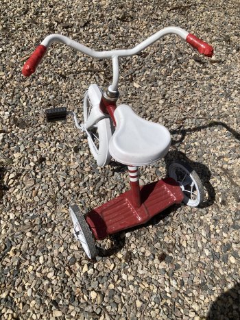 Medium size tricycle..Has steel wheels and rubber tires.Well built. $35.00 Located in Rivers