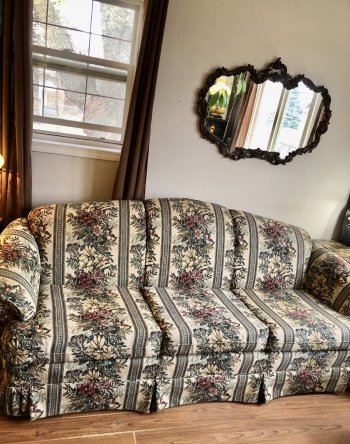 -Woven Tapestry Fabric With Floral Pattern & Nice Large Rolled Comfy Arm Rests