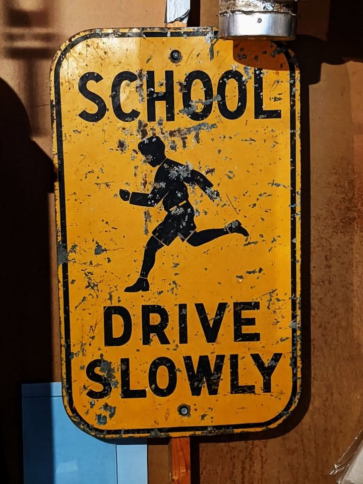 Images: 1940/50's Canadian Made School Drive Slowly Traffic SIgnSign