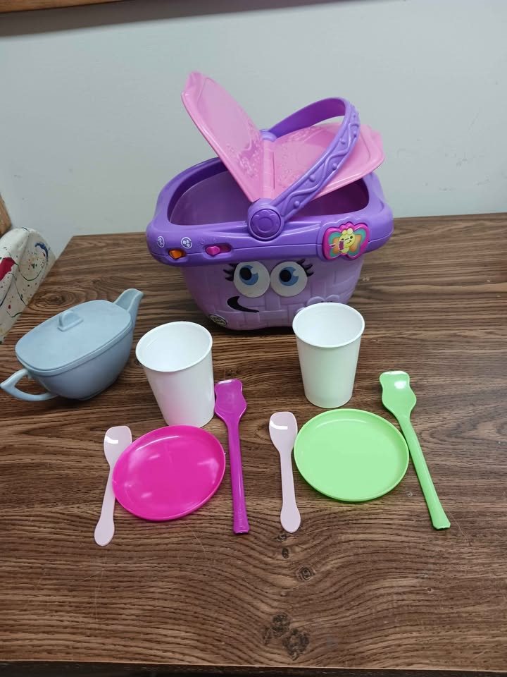 LeapFrog Picnic Basket with of Plastic Dishes & Tea Pot