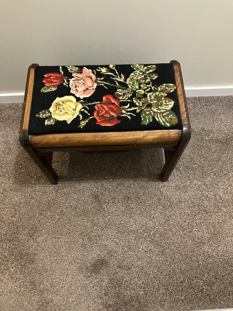 Images: Wood and embroidered stool