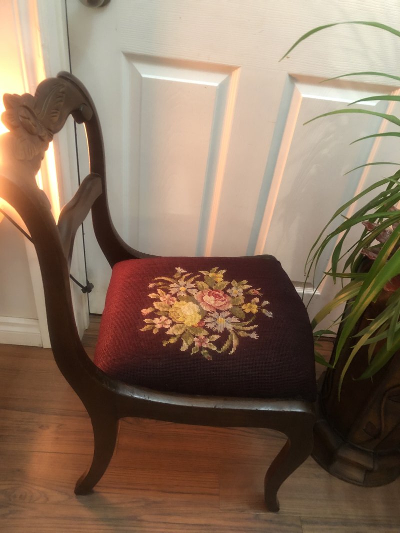 Images: Vintage Rose Mahogany Chair With Floral Needlepoint Seat