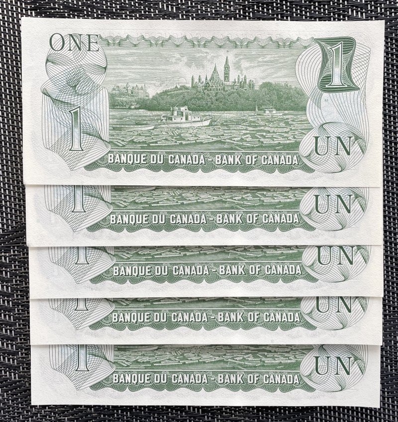 Images: 1973, 5, $1 Bills, Unc., Consecutive