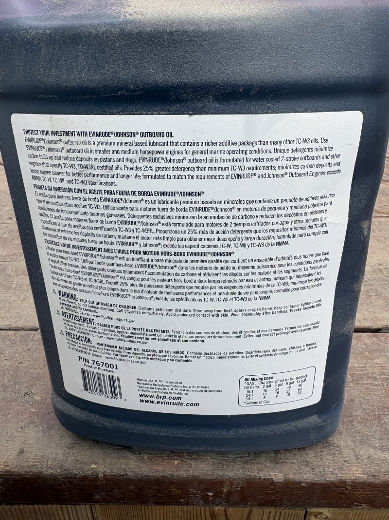 Images: Evinrude /Johnson 2 Stroke marine oil