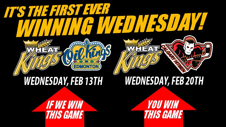 IT'S WINNING WEDNESDAY! Grab your tickets tonight to get in on the action BWK fans! If we beat the Oil Kings tonight, those tickets can be exchanged at the Box Office to watch the Wheat Kings vs Hitmen on February 20th! At no charge!