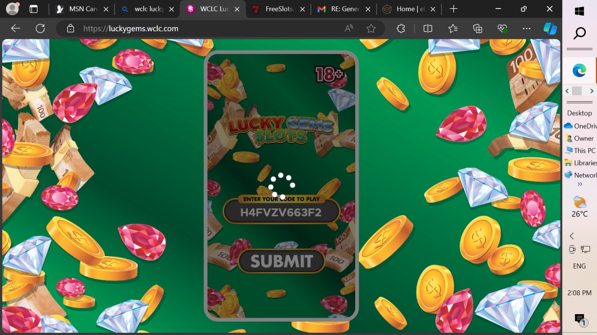 rubyred said "This ticket I" m suppose to be able to submit code on my desk top computer , I enter code push submit and ticket stalls out end of process . Now I'm not to swift with computers might I have something on that's stopping process ? I contacted luckygems,wclc,com fine on their end so it's probably me . I do not have the phone to scan barcode Any info would be great "