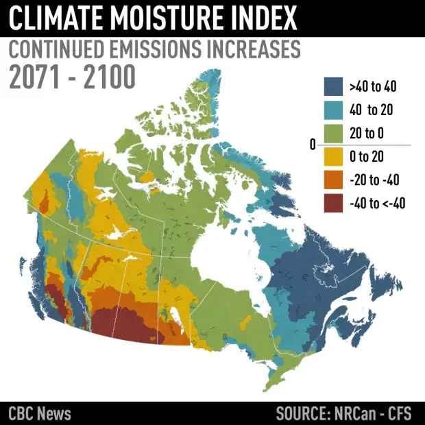 The bottom line is this is a precipitation projection for less than 3C. In this projection there will be little or no snow cover on the prairies. And more hot days and a longer warm season each year. That map shows the end of farming through the cultivated areas of the prairies, and likely worse south of the border in the west. In fact, with 40% or less precipitation and higher temps, rivers may stop reliable flow, which spells the end of many cities. Brandon is likely on the list.